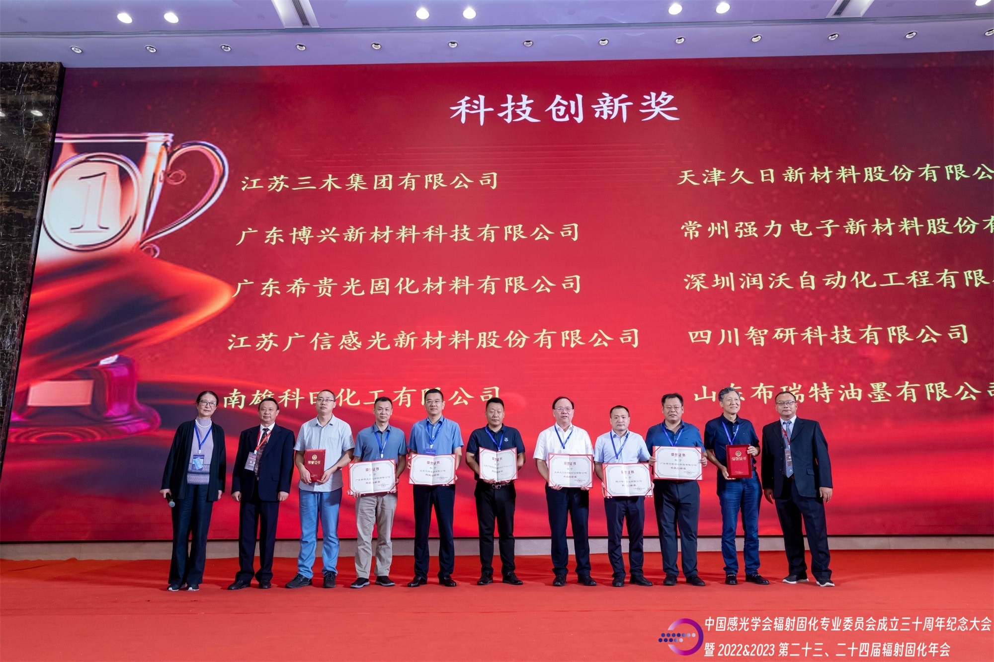 7月19日,中国感光学会辐射固化专业委员会成立三十周年纪念大会暨2022&2023第二十三、二十四届辐射固化年会在江苏宜兴隆重召开。会上对为行业发展做出突出贡献的企业和个人进行了重点表彰。久日新材荣获企业成长奖、科技创新奖、科技进步奖、科技成果奖。董事长赵国锋博士荣获行业杰出贡献奖,副总裁张齐博士荣获行业突出贡献奖,研发中心技术骨干董月国获得青年创新奖。